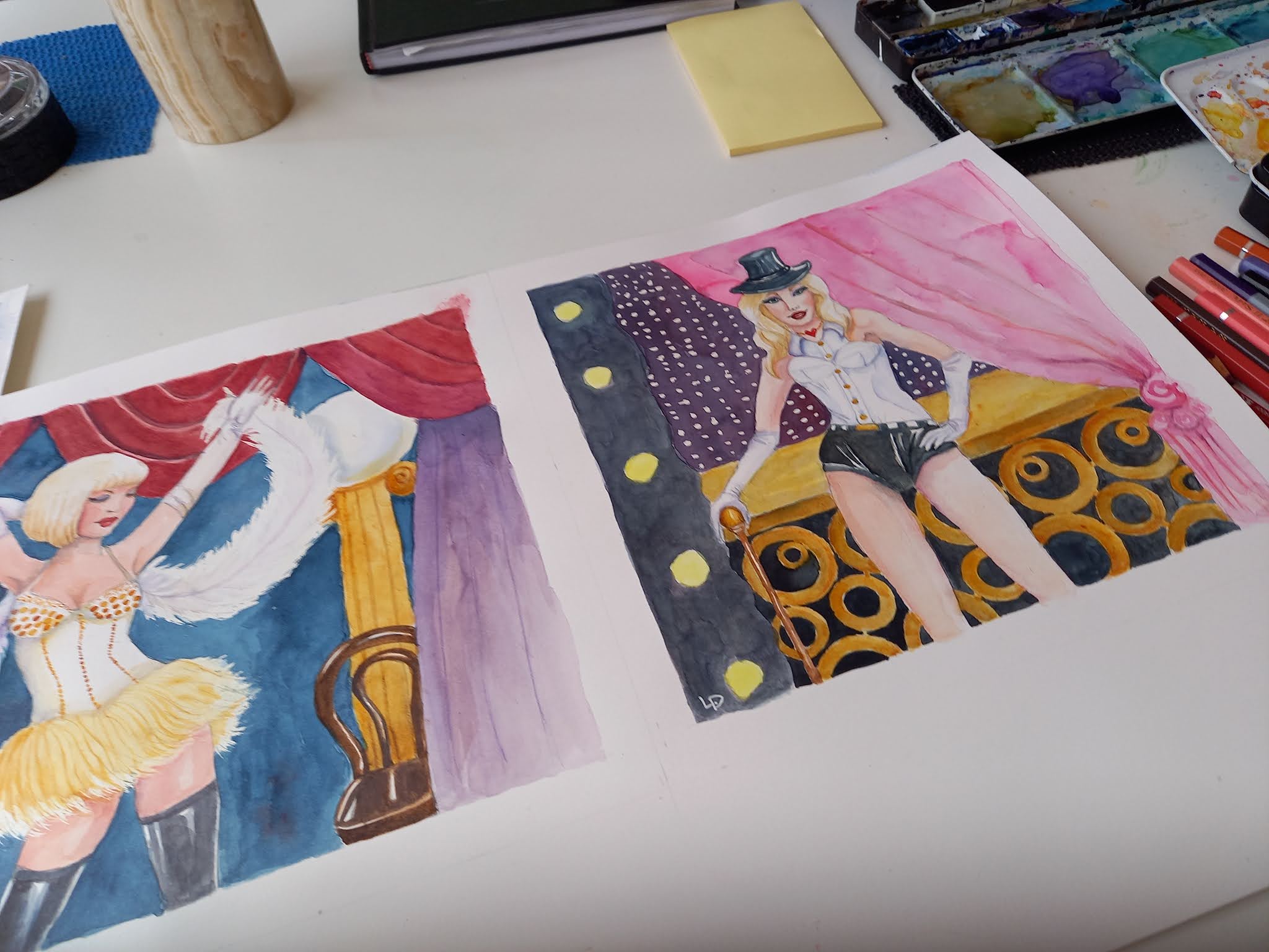 Akvarelmaling i fuld gang :) Jeg hygger mig med The Curly Girls 🧡 || Watercolors in full swing. I have fun with The Curly Girls 🧡